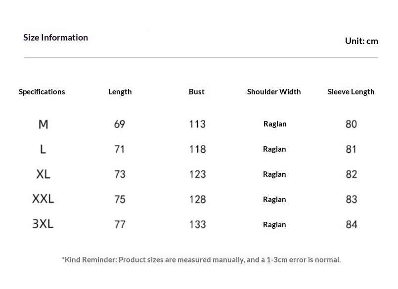 Sizes: M, L, XL, 2XL, 3XL